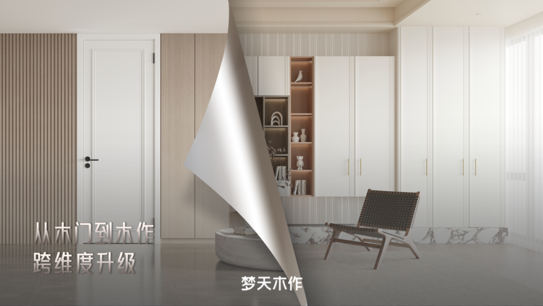 自2019年正式启动木作战略以来,梦天木作以木门为原点,切入墙类、柜类两大品类,成功实现了从单一木门品类向门墙柜一体化高端全屋定制解决方案的转型升级,致力于为用户打造健康温暖美好的家居环境。