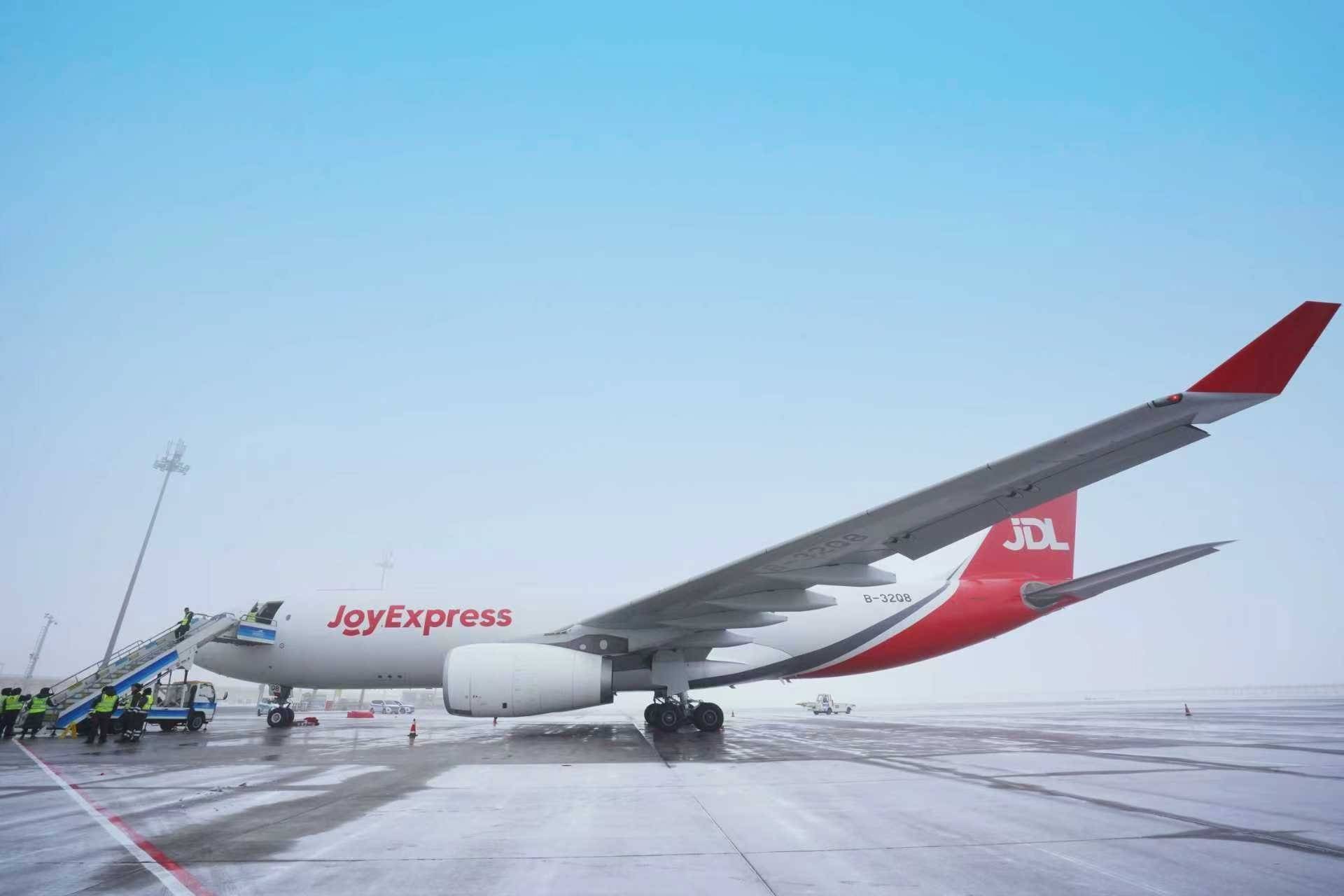 据介绍,作为京东航空机队部署的首款宽体货运机型,空客A330货机具备优异载货性能与运营优势。其最大业载约60吨,相较于此前执飞的窄体货机,载重量提升近3倍,能同时满足跨区域长距离运输及大批量货物集中转运需求。