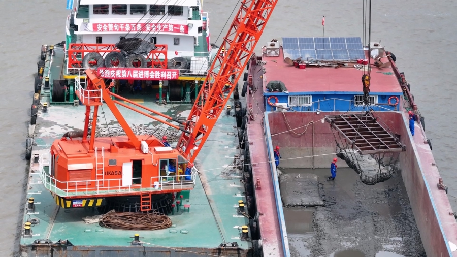 本次演练旨在提升水岸协同应急反应能力和队伍实战效能,设置了水上和陆上两个场景。水上场景模拟2艘渣土船未按进博会管控规定申报船舶动态,擅自闯入管控水域,在闯关逃逸过程中与游览船发生碰撞,引发游览船失控、船上80名旅客遇险、肇事船上3名人员跳江逃逸,同时,另一艘肇事船舶在逃逸过程中再次与项目部运输船碰撞,导致船体破损进水。