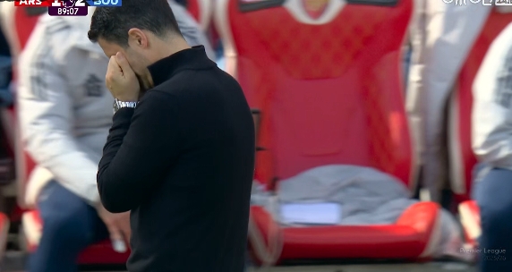 资深配资论坛网 肢体语言非常沮丧!赛中阿尔特塔捂脸,约克雷斯咬球衣